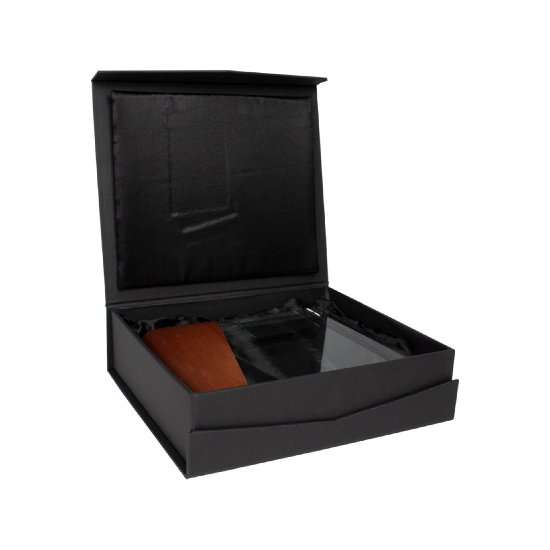 Elegante Trofeo modelo «Lewis», en madera barnizada y cristal. Presentación en caja de cartón forrado negro con cierre imantado, interior acolchado de espuma y tela poliéster satinado negro, con troquel. •Tamaño: 18.6 x 16 x 3.7 cm. / Caja: 21.7 x 19.1 x 6 cm. •Peso: 1.7kg